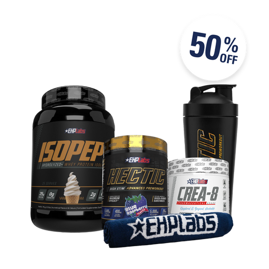 This stack is designed to enhance strength, endurance, and recovery. HECTIC Pre-Workout delivers explosive energy and focus, while IsoPept Hydrolyzed Whey Protein supports rapid muscle recovery. Crea-8 helps increase power output and muscle volume.