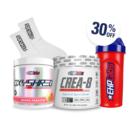 Introducing the Muscle Gain - Beginner bundle from EHPlabs, designed to kickstart your muscle-building journey. This comprehensive bundle includes OxyShred and Creatine, two essential supplements to support your fitness goals and promote lean muscle growth.OxyShred, EHPlabs' popular thermogenic fat burner, not only helps to enhance your energy and focus but also assists in boosting your metabolism. By combining key ingredients, OxyShred supports fat loss while preserving lean muscle mass, making it an ideal addition to your muscle gain regimen.Creatine, a well-known and scientifically proven supplement, aids in increasing muscle strength and power. It provides your muscles with the necessary energy to perform intense workouts and supports muscle recovery. By supplementing with Creatine, you can enhance your muscle gains and overall athletic performance.Incorporate the Muscle Gain - Beginner bundle into your fitness routine to optimize your muscle-building potential. OxyShred will help you achieve a leaner physique by targeting stubborn fat, while Creatine will support your strength and muscle development. Take the first step towards your muscle gain goals and unlock your full potential with EHPlabs.As with any dietary supplement, it is important to consult with a healthcare professional before introducing new products into your routine, especially if you have any underlying medical conditions or are taking medication. Fuel your muscle gain journey with EHPlabs' Muscle Gain - Beginner bundle and witness the transformative power of dedicated training and quality supplementation.