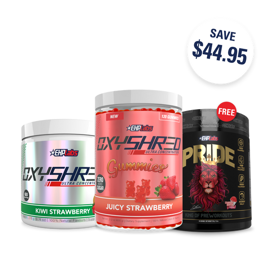 Cover all your energy needs with this ultimate daily performance stack. Use OxyShred Gummies for all day focus and vitality, then intensify your training sessions with a scoop of Pride Pre-Workout.