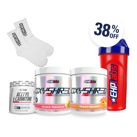 Kickstart your fitness journey with the OxyShred Twin Pack Endurance Bundle! This powerful bundle combines OxyShred Ultra Concentration and Acetyl L-Carnitine with essential workout gear—a premium EHP Shaker Bottle and Gym Towel—to keep you motivated and ready to crush every session.